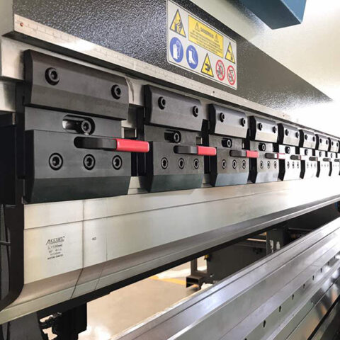 ACCURL CNC press brake use all Raw material is provided by qualified suppliers and chemical composition corresponds to international standards. Therefore, raw material yield and tensile strength are guaranteed,  are standardized with a 8.4 x 3.5 mm safety groove,  which keeps the tool from falling out.
